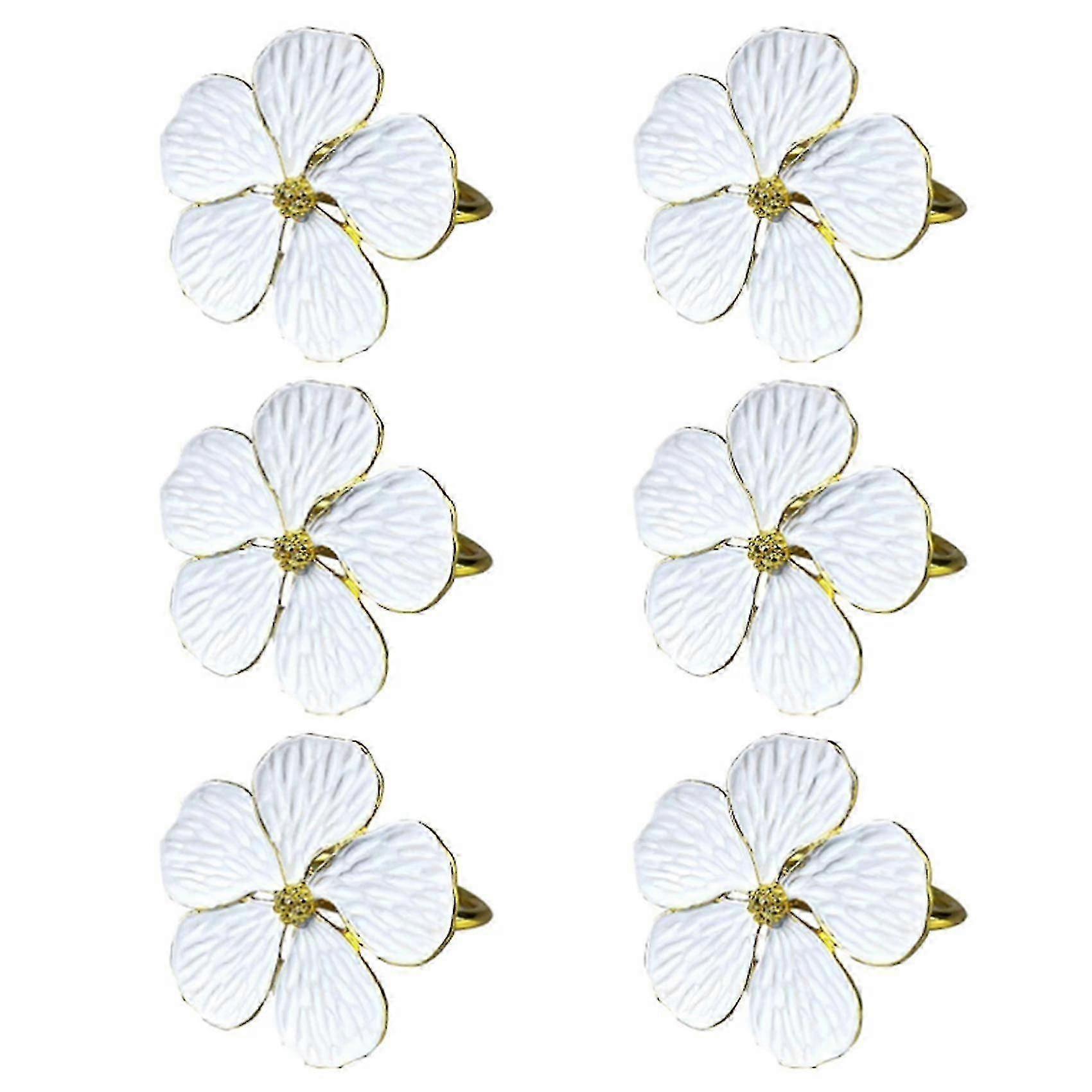 6Pcs Flower Napkin Ring,Floral Serviette Buckles Napkin Holder Dining Tables Setting Decor for Wedding Banquet ChristmasWhite gold SZRH