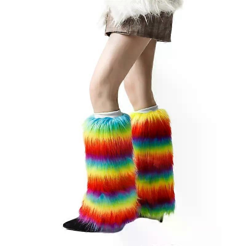 Soft Furry Leg Warmers for Ladies Stylish Winter Rainbow Colorful Boot Covers 15cm 20cm 25cm 30cm 40cm