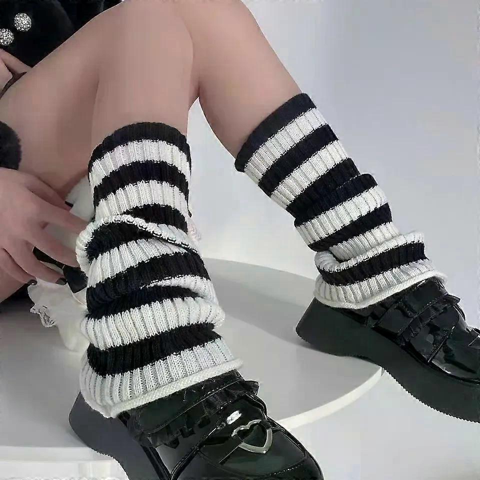 Autumn Winter JK Spice Girls College Foot Cover Warm Pile Socks Boot Cover Black White Striped Knitted Leg Warmers Women