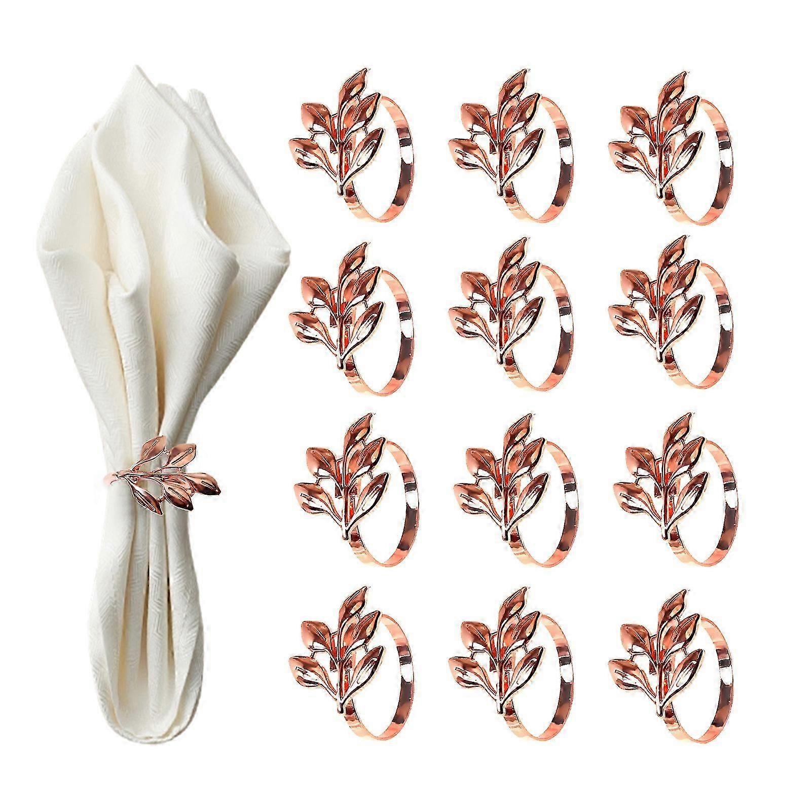 Set of 12 Gold Napkin Rings Holder for Wedding Christmas Fall Leaf Party 18