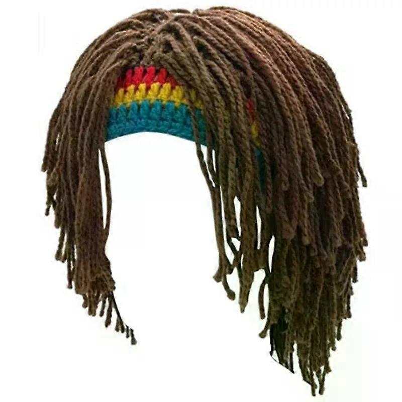 Jamaican Knitted Wig Braid Hat Unisex Hair Hat Handmade Fancy Wig Caps Halloween Ghost House Wig Black