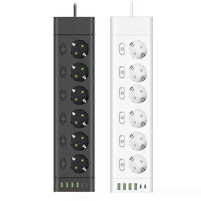 EU Plug Power Strip Multiple Independent Control Outlet Sockets 2m Extension Cord Electrical Socket with 4 USB 2 Type-C Ports Backlight/Indication The backlight feature not only adds a modern touch but also helps in identifying the power strip in low-light conditions. 4 USB 2 Type-C Ports Stay charged on the go with 4 USB 2 Type-C ports, providing quick charging for your devices and keeping them powered up. 2m Extension Cord Length With a 2m extension cord, this power strip offers ample reach for your devices, reducing clutter and enhancing organization. Multiple Independent Control Outlet Sockets Enjoy convenient control over each outlet with our multiple independent control feature, ensuring efficient power management. Standard Grounding Rest assured with standard grounding, ensuring safety and compliance with electrical standards. _x000D_