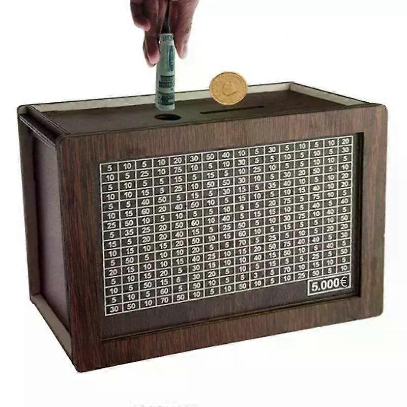 1000/2000/3000/5000/10000 Euro Money Box Wooden Piggy Bank Money Vault Savings Box Challenge Cash Storage Case