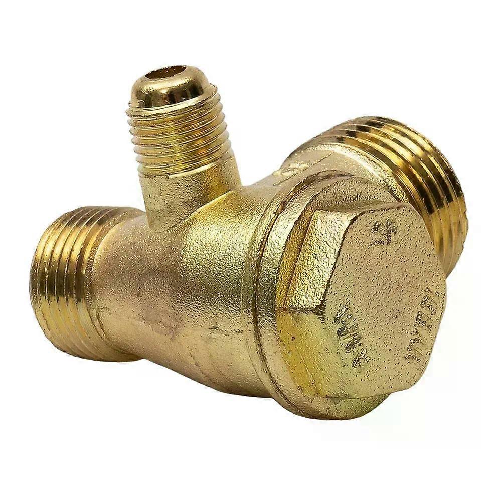 Male Thread Air compressor check valve Zinc Alloy Accessories Connector For Air Compressor 20*16*10 Replacement Male Thread Check Valve Connector With 3-Port Zinc Alloy For Air Compressor Parts Accessory Features: * new and high quality *Made of high quality material, and practical to use *Excellent replacement for the old or broken check valve of your air compressor *This foam bottle sprays foam all over the vehicle creating the "snow bath effect" *The three male thread connectors are respectively for tube connecting, air pressure tank and compressor piston pump *Convenient to install with the thread connecting ends Specifications: *Material:Zinc Alloy *Color:Gold (As Pictures Show) *Male Thread Diameter: 20mm/16mm/10mm Package Contents: 1*Air compressor check valve Note: 1. The real color of the item may be slightly different from the pictures shown on website caused by many factors such as brightness of your monitor and light brightness. 2. Please allow slight manual measurement deviation for the data. _x000D_