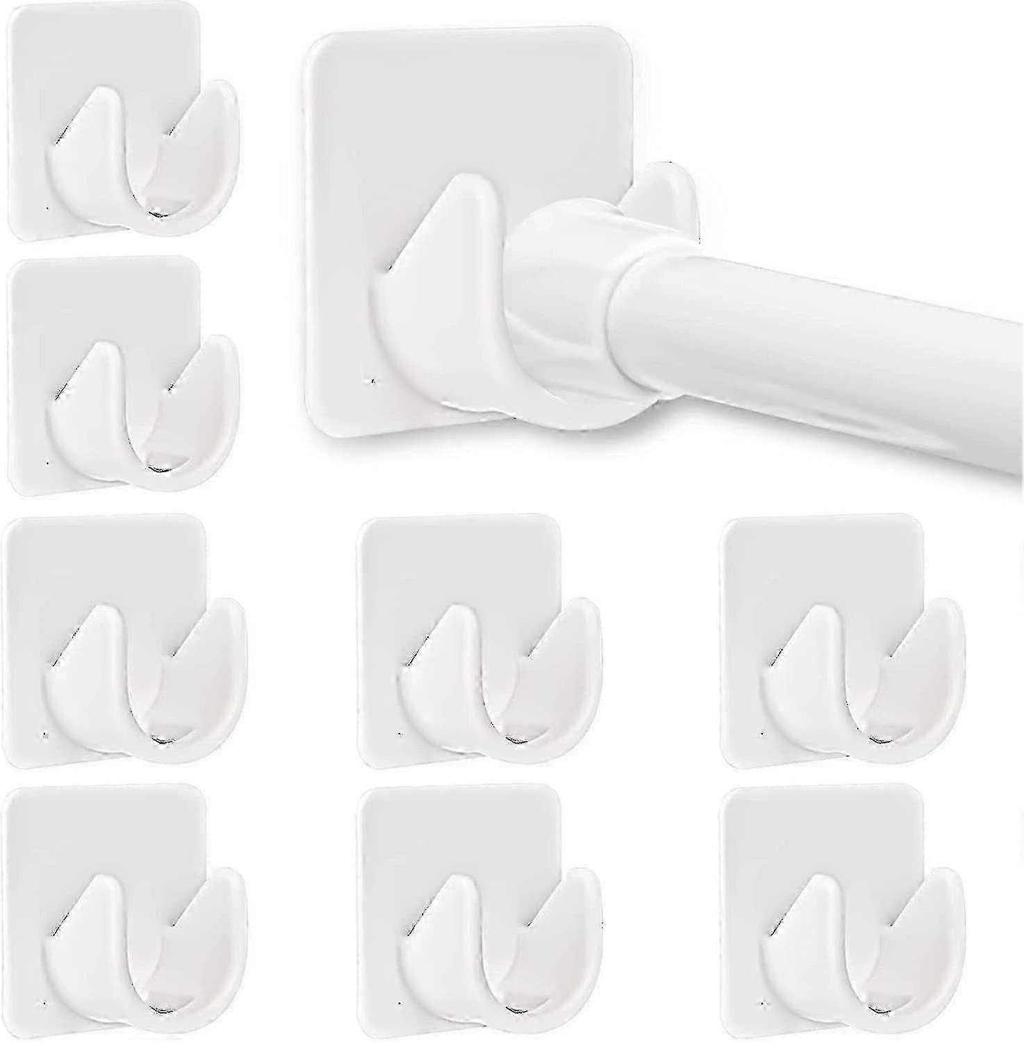 8pcs Adhesive Curtain Rod Holder For Bathroom - 2 In1 No Drilling White Tension Rod Holder Wall Mount Hooks SZRH