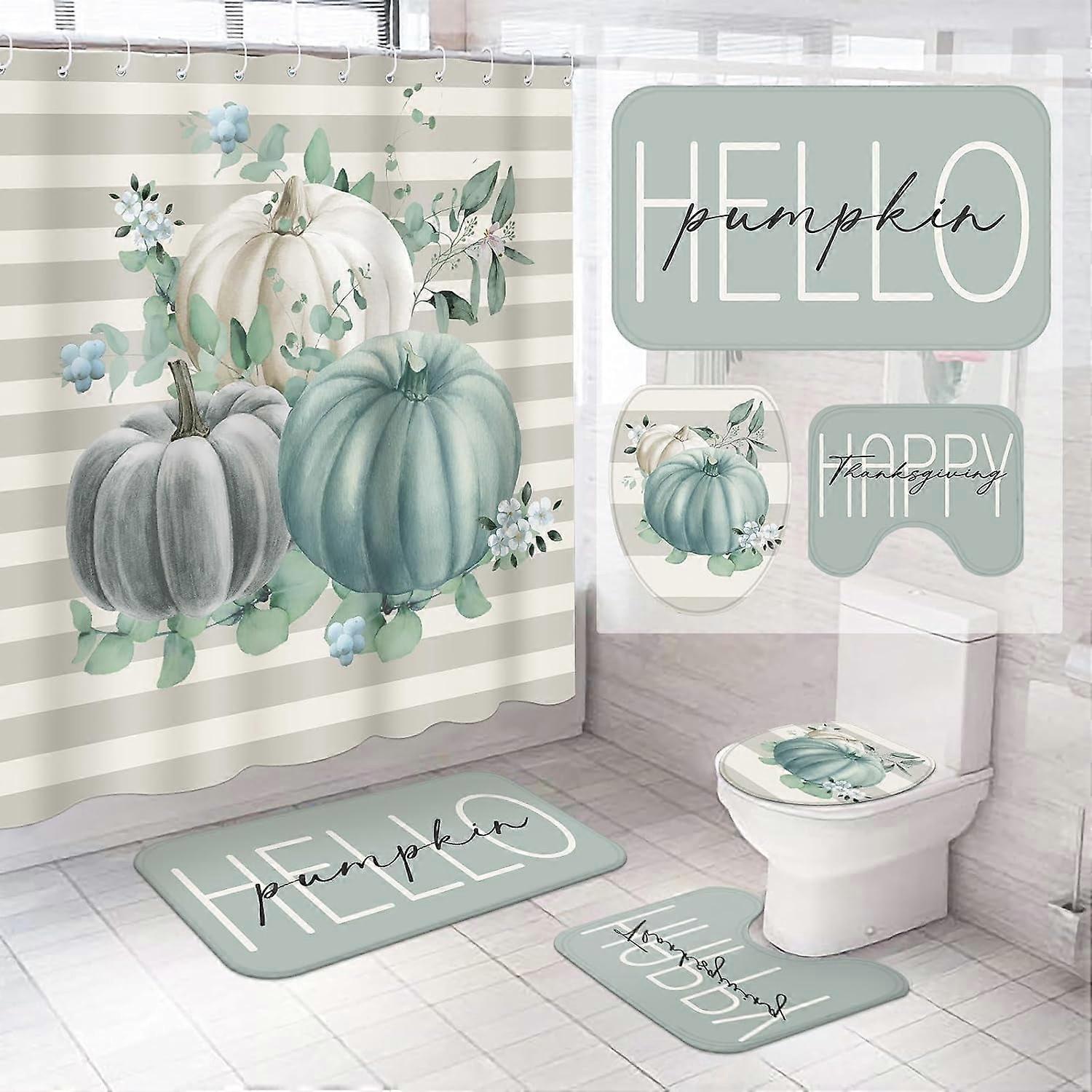 Preboun Pink Christmas Tree Shower Curtain Set 72x72 in with 12 Hooks, Non-Slip Rug, Toilet Cover & Waterproof Mat, compatible with Xmas decor