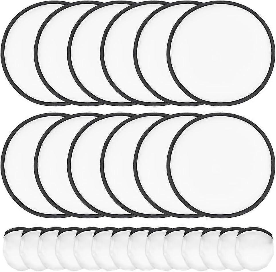 30Pcs White Foldable Flying Disc Fans 9.8inch Sublimation Fans Nylon Black Edge Folding Fan Set with Bag for Wedding Party Favors Outdoor Activity Set Details: You will get 30pcs white folding fans with black edge and 30pcs white pouches with black edges, the folding fans come in the pouches, the quantity and colours are enough to meet your small batch needs. Fan Size: Each hand folding fan is about 9.8 inch/ 25cm in diameter and 2 mm thick, can be used as a handheld fan, the folded diameter is about 3.5 inch, and the bag size is 3.8x3.6 inch/97x93 mm. Practical Material: The disc folding fan fan is made of nylon material, strong and durable, not easy to break, waterproof and abrasion-resistant, a good item for organising outdoor group activities. Lightweight & Portable: Each fan is lightweight, smaller than a hand (when folded), and can be easily packed into a bag for easy use and play. DIY Fans: We provide white blank fans, you can make fans with different patterns by DIY with your family, friends, use your imagination to create a unique fan!