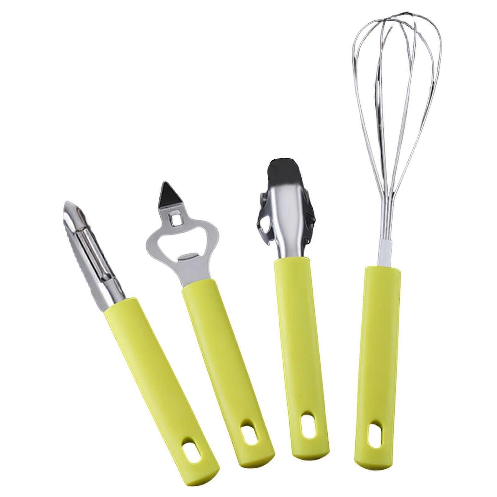 4-Piece Stainless Steel Kitchen Gadgets Set with Egg Beater, Peeler, Bottle Opener, Tray Lifter & Fish Scaler - Cooking Tool Set