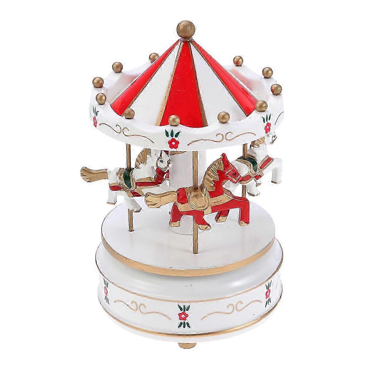Wooden Carousel Music Box Wooden Decorative Toy Desktop Musical Box Gifts for Christmas Birthday Valentine's Day (Red) SZRH