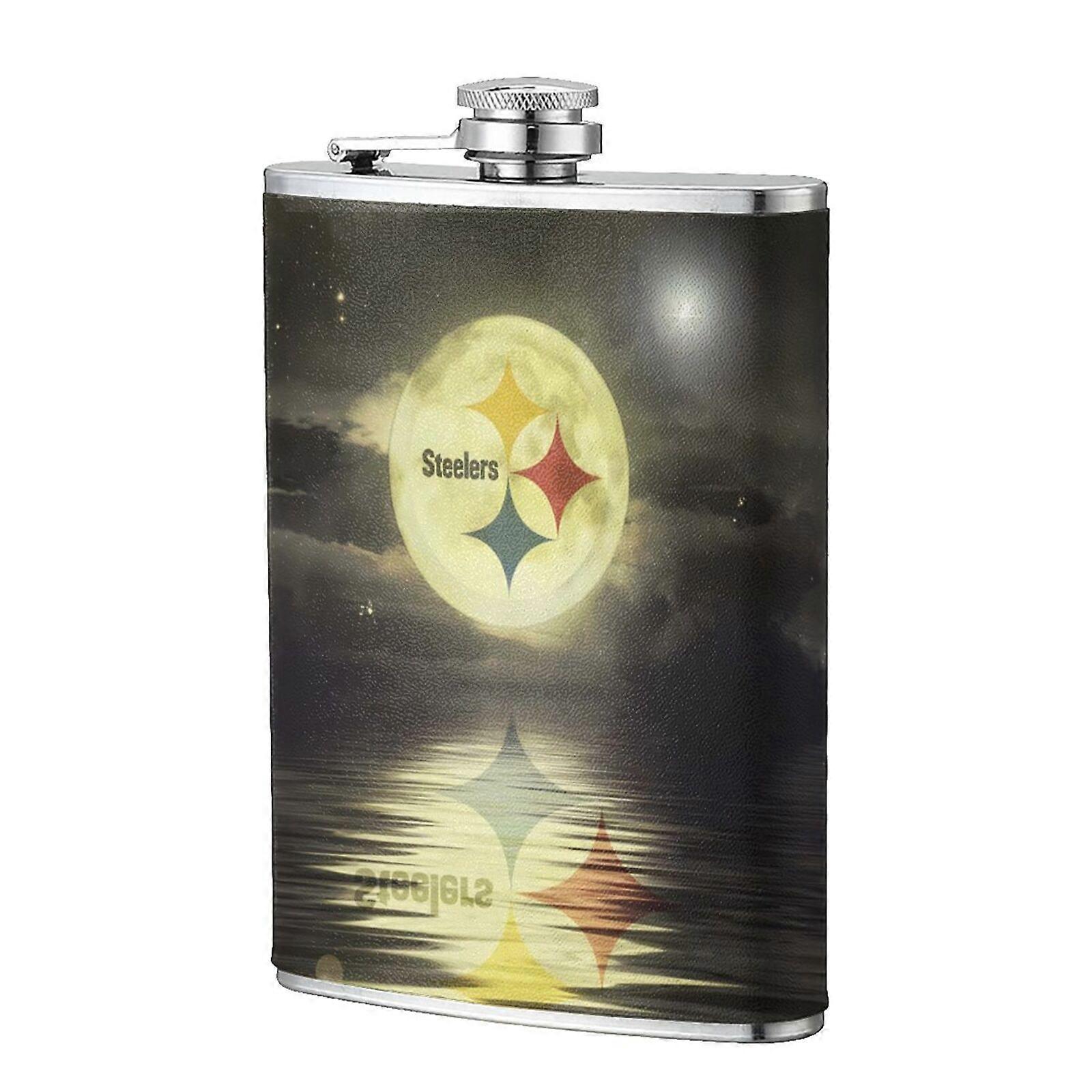 Steelers Flagon Hip Flask 8oz - Food-grade Stainless Steel, Leather Pocket Flask for Men, Compatible with Outdoor Sports, Camping, Weddings