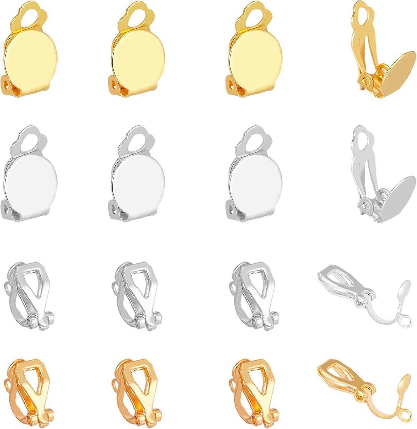 160Pcs 2 Styles Iron Clip-on Earring Findings Non Pierced Earring Converter Stud 2 Colors Round Tray Earring Clip with 160Pcs Rubber Ear Nuts