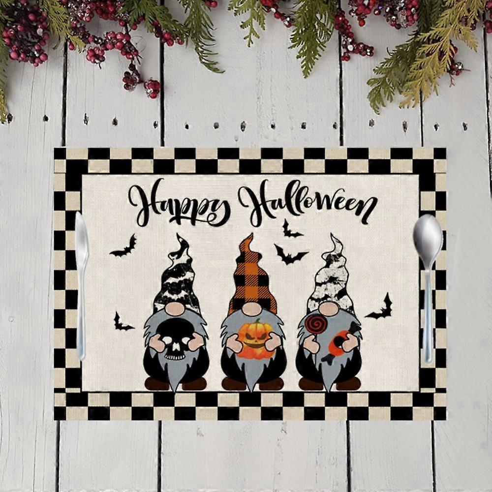 4pcs Halloween Placemats, Waterproof Cotton Linen Table Mats, Heat-Insulation Dish Pad for Halloween Party Dining (Compatible with Halloween Decor)