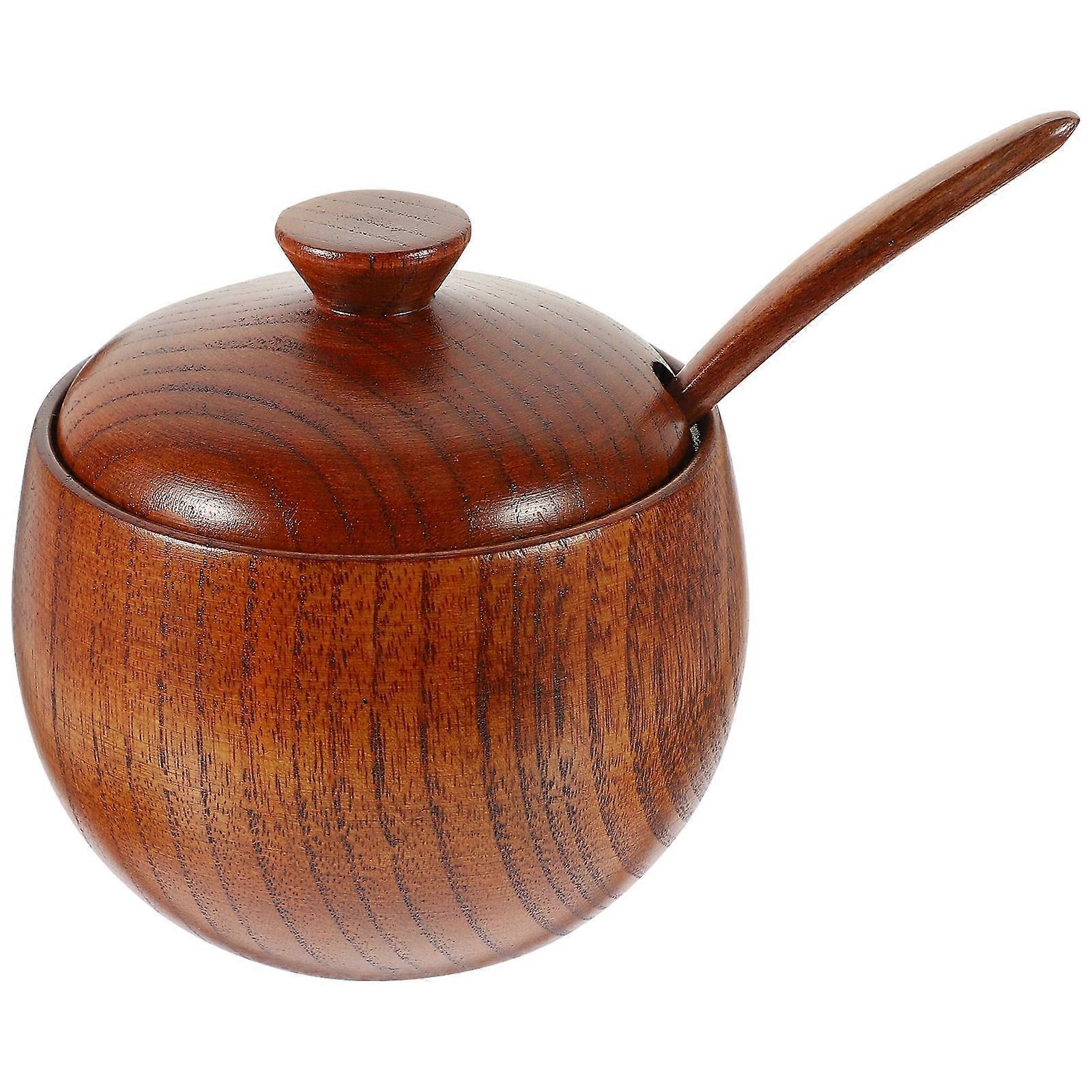 Salt Shaker Candy Jar Household Sugar Canister Wooden Seasoning Carving Spice Bowl