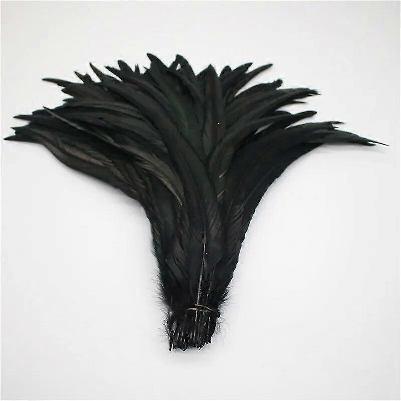Beatiful 50pcs Natural Cock Tail Feathers 25-40cm / 10-16inch Clothing Decoration Stage Performance Rooster Tail Feathers Plume black 30-35cm