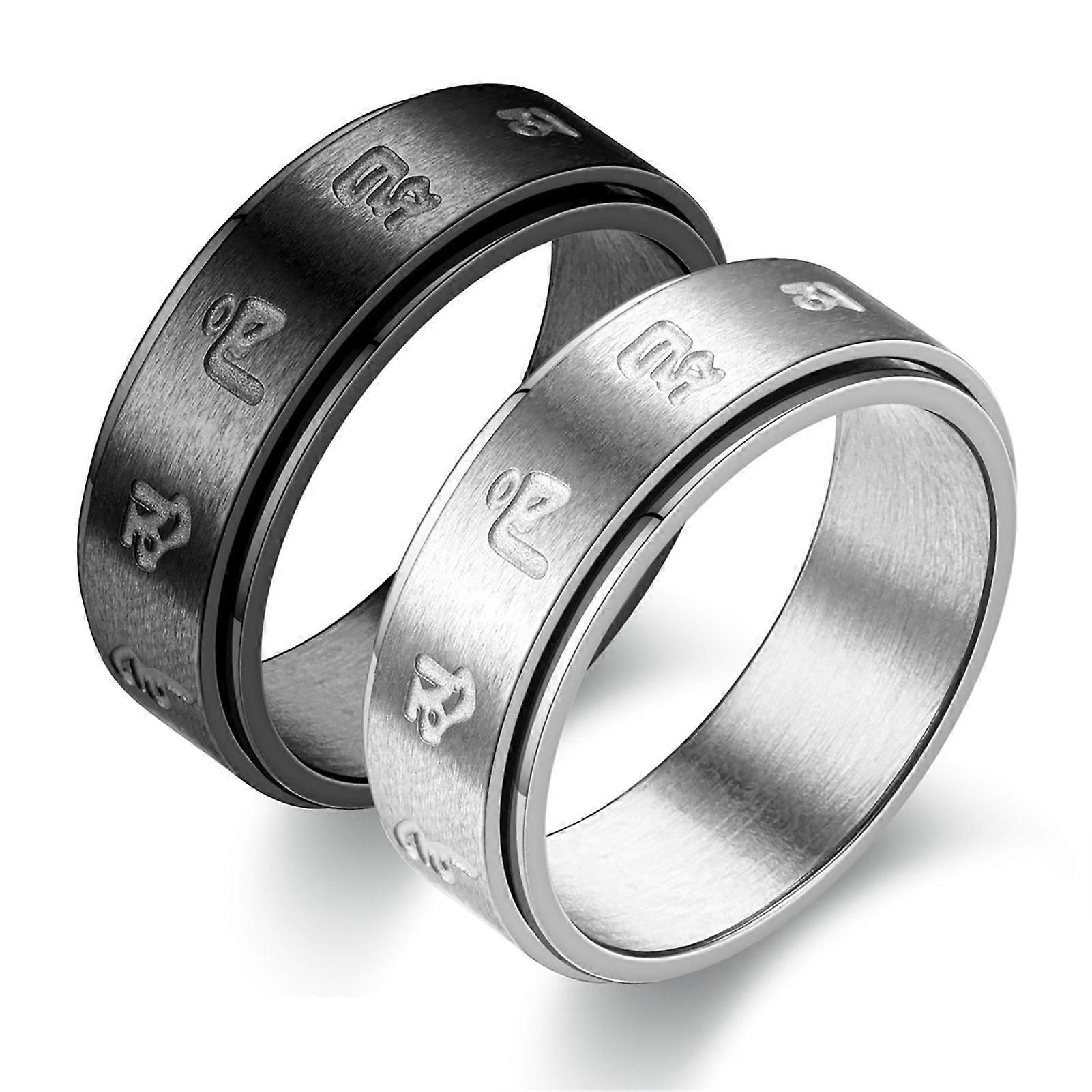 Hesroicy Couple Ring Retro Rotatable Stainless Steel Engraved Polished Stress Relief Casual Women Men Finger Ring Fashion Jewelry