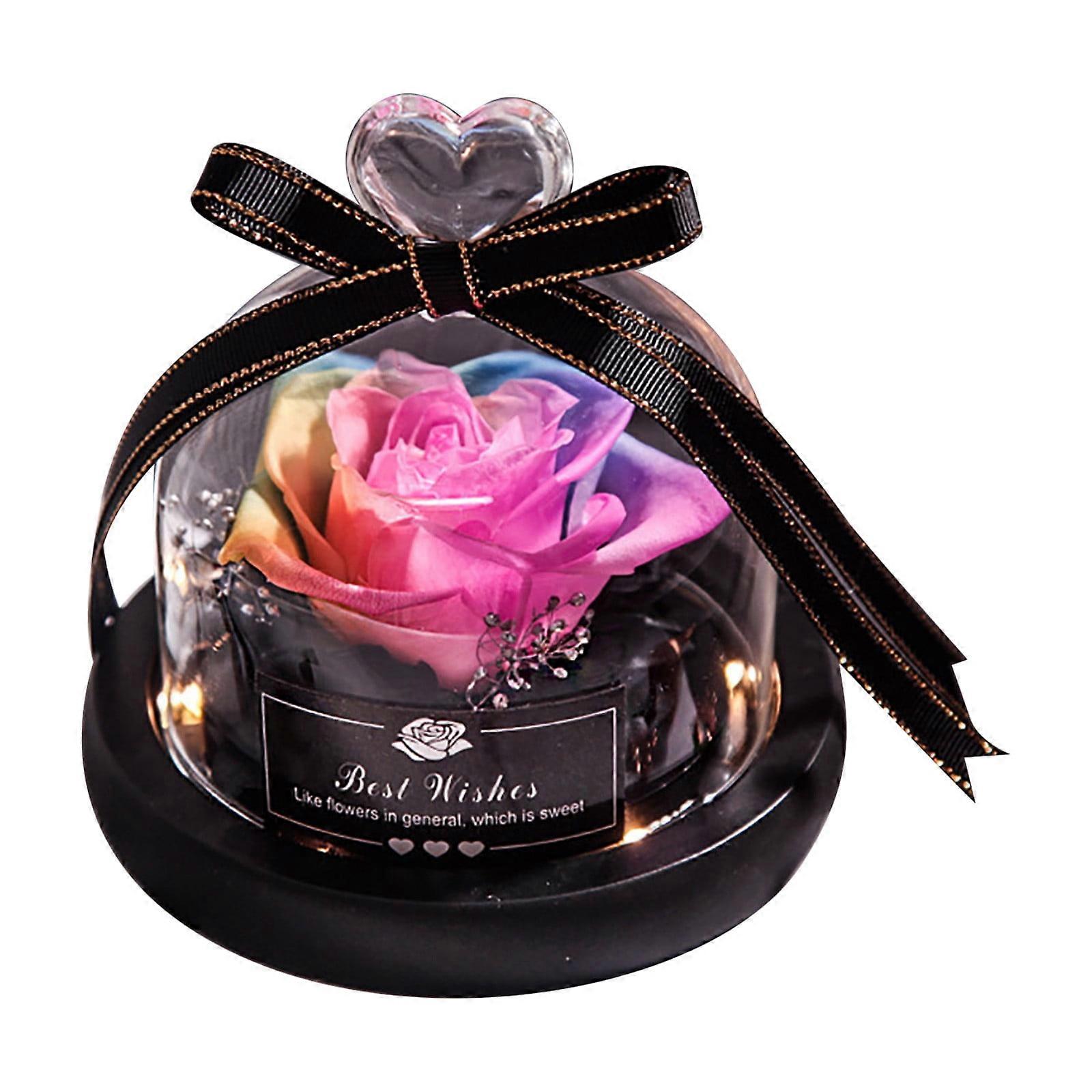 Valentines Artificial Flowers Decorations, Dried Roses with LED in Glass, Eternal Real Rose for Home, Wedding, Gifts for Her