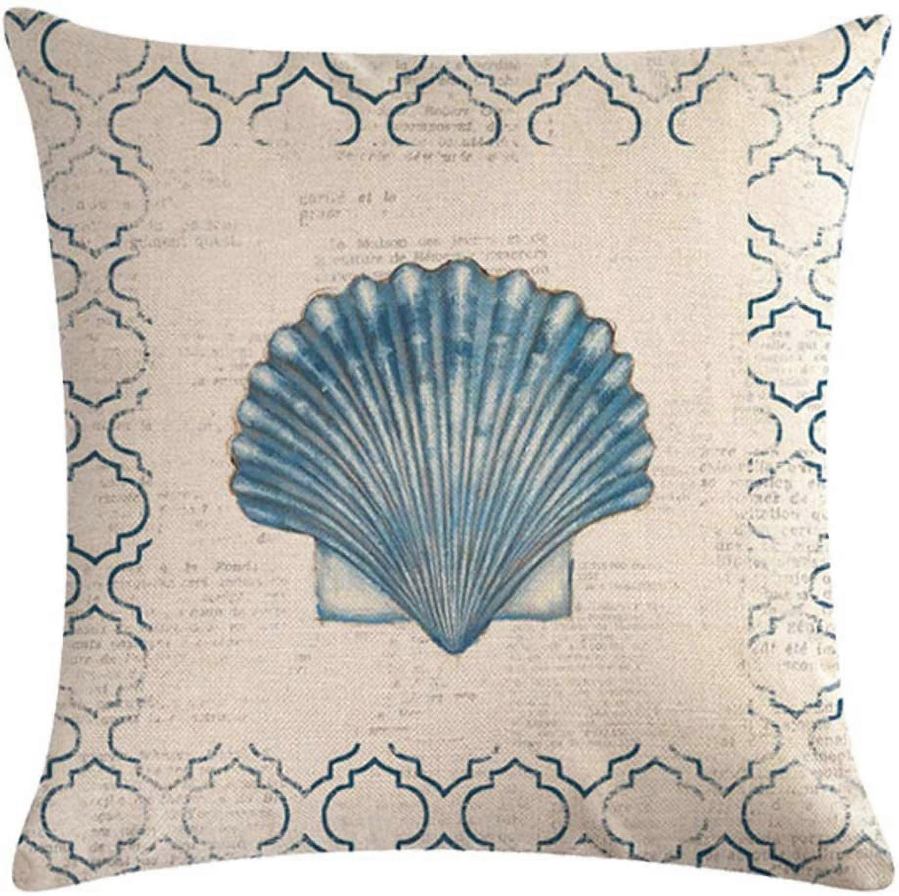 Vintage Sea Theme Pillow Covers, Compatible with Coastal Beach Starfish Shell Cushion Cover, 18"x18" Cotton Linen Decor for Sofa