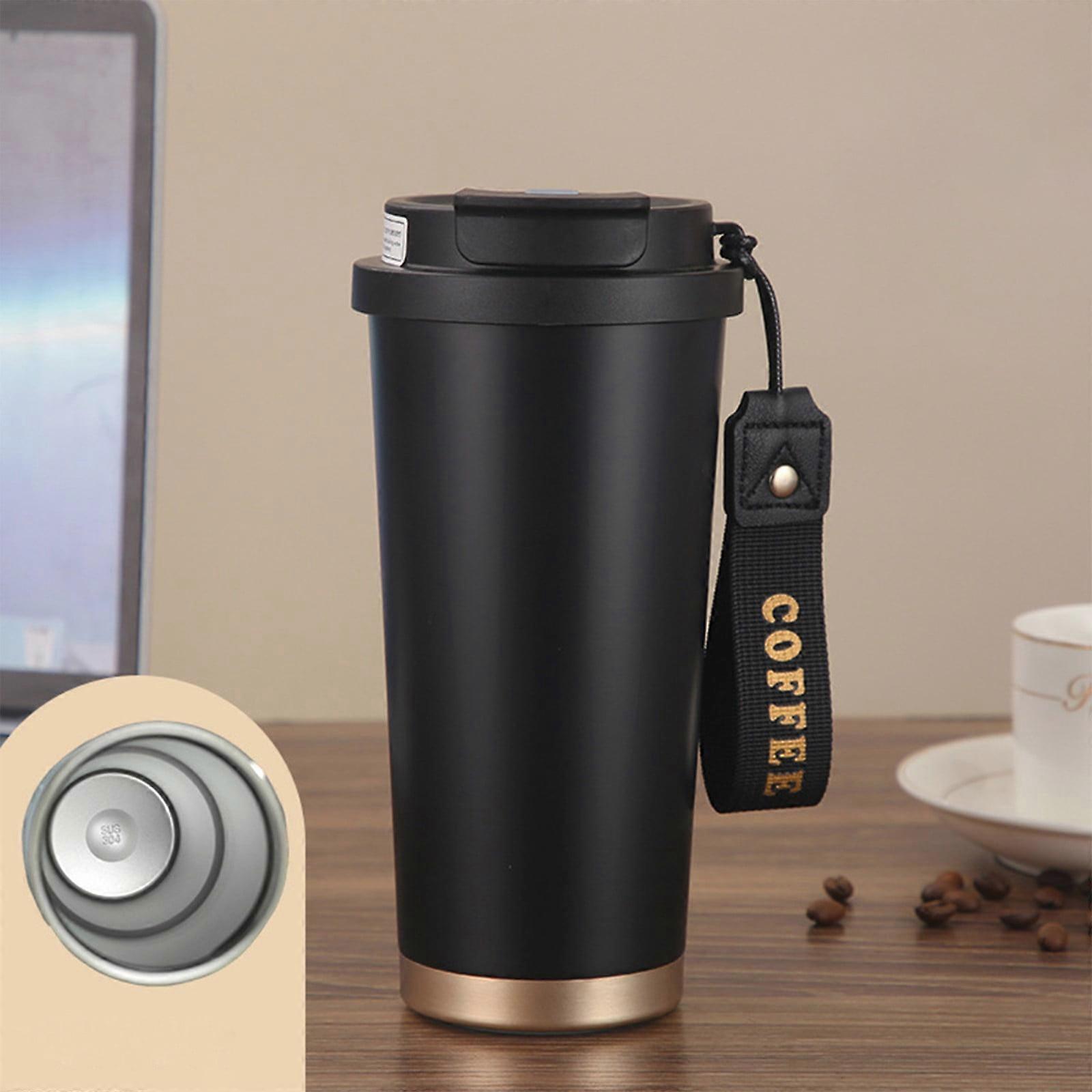 Ceramic Coating Coffee Travel Mug, Double Wall Vacuum Insulated Tumbler with Lid & Straw, Reusable Cup for Hot/Cold Drinks - Black