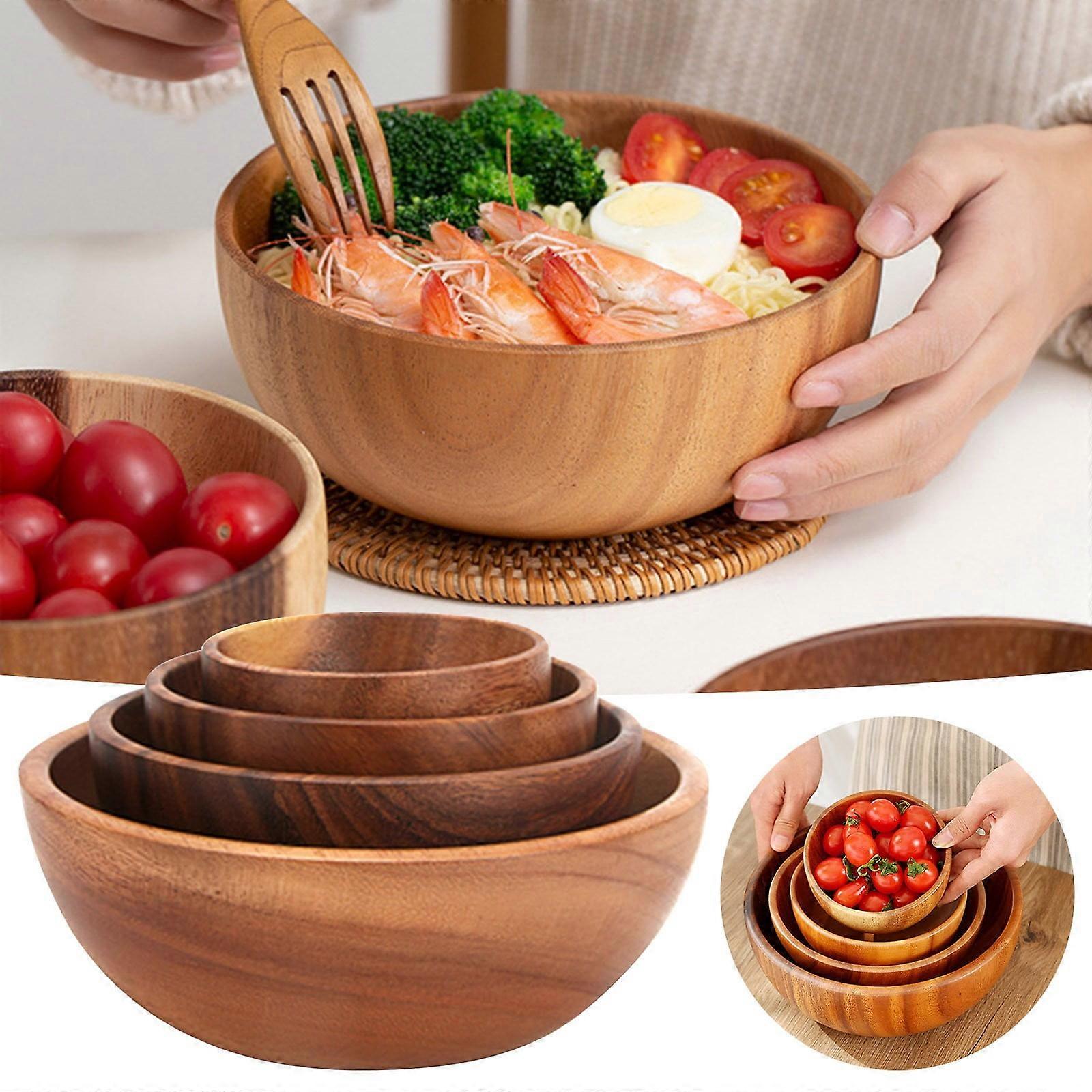WinysinFlat Wooden Bowl Wood Whole Wood Bowl Large Wooden Basin Wooden Rice Bowl And Basin Fruit Bowl