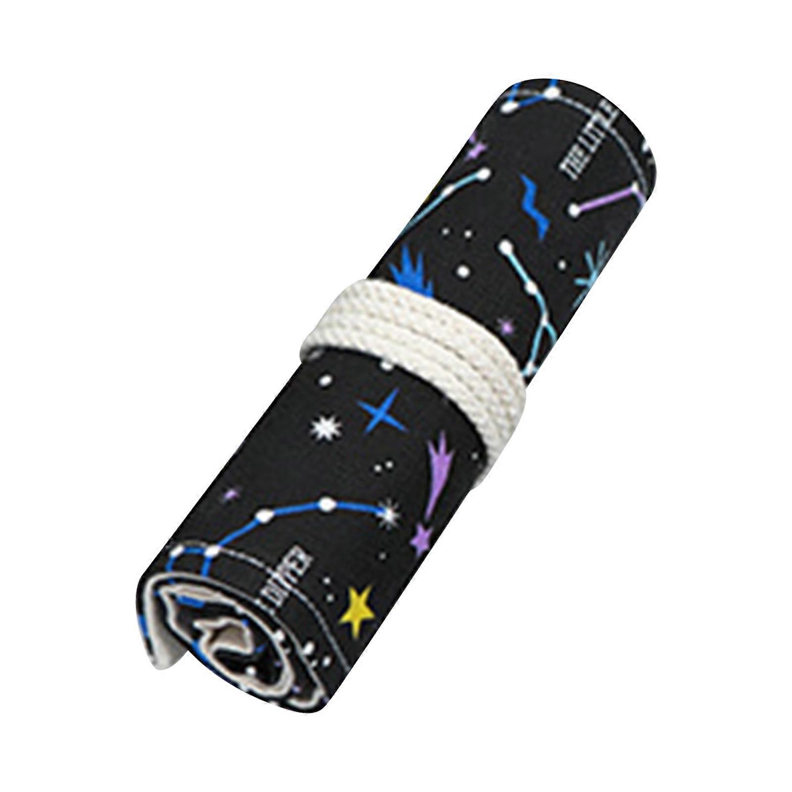 Yakbaofuo Night Sky Sketch Colored Pencil Bag, Compatible with 12/24/36/48/72 Pens, Large Capacity Canvas Roll for Students