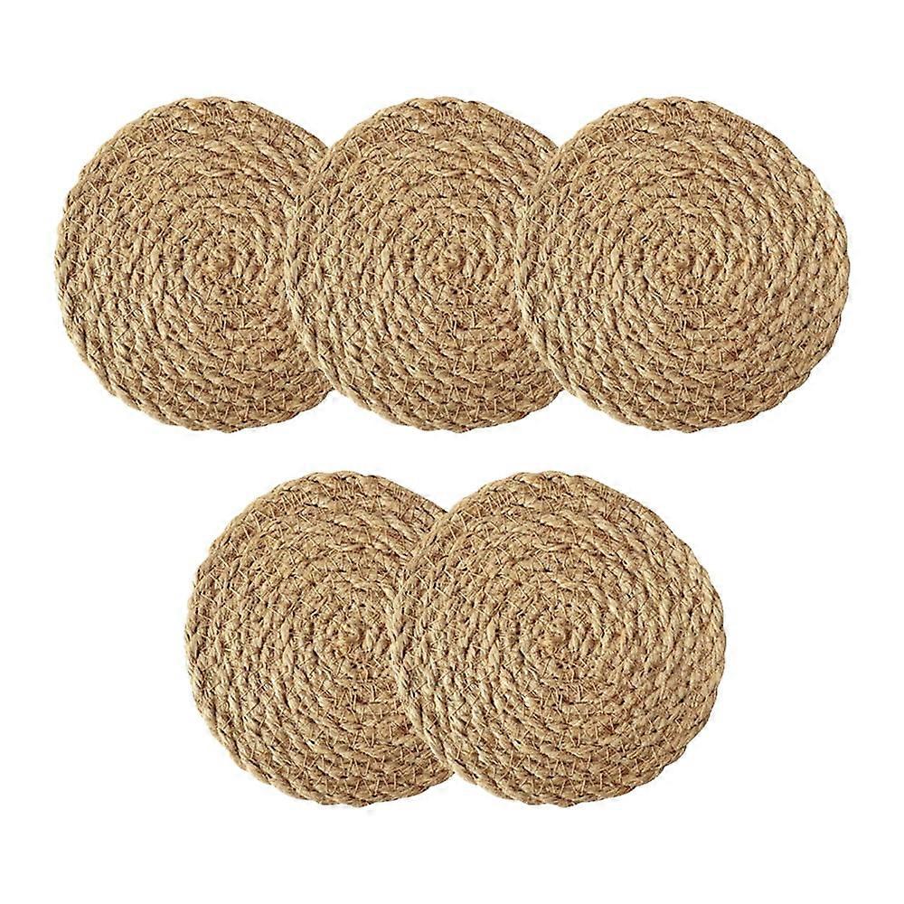 Round Braided Placemats, Natural Straw Mat Braided, Farmhouse Woven Mats for Kitchen, Dining Table, Dia 4.3", Set of 5