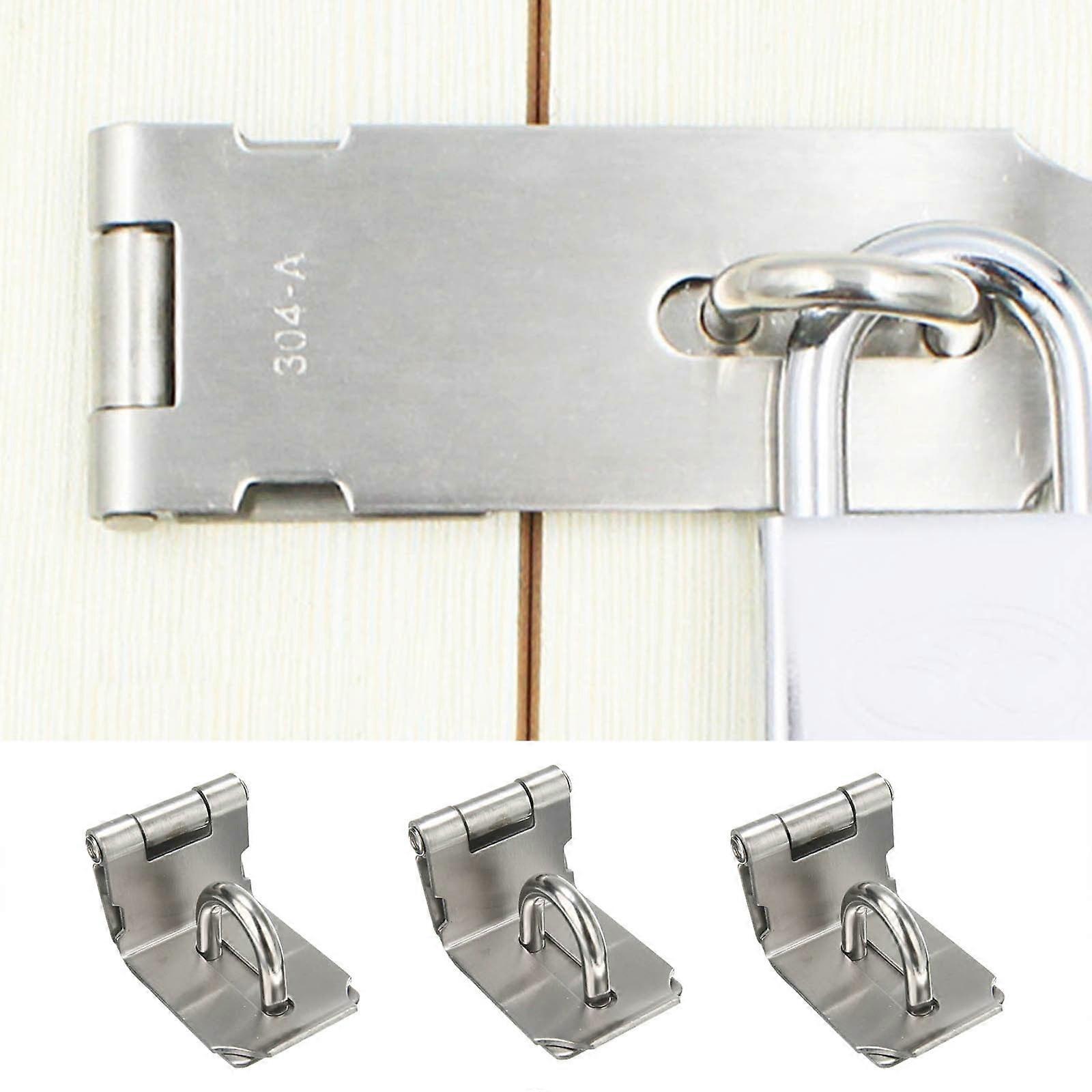 New Door Padlock Plate Retaining Buckle 90 Stainless Steel Hasp and Nail Door Padlock Folding Silver