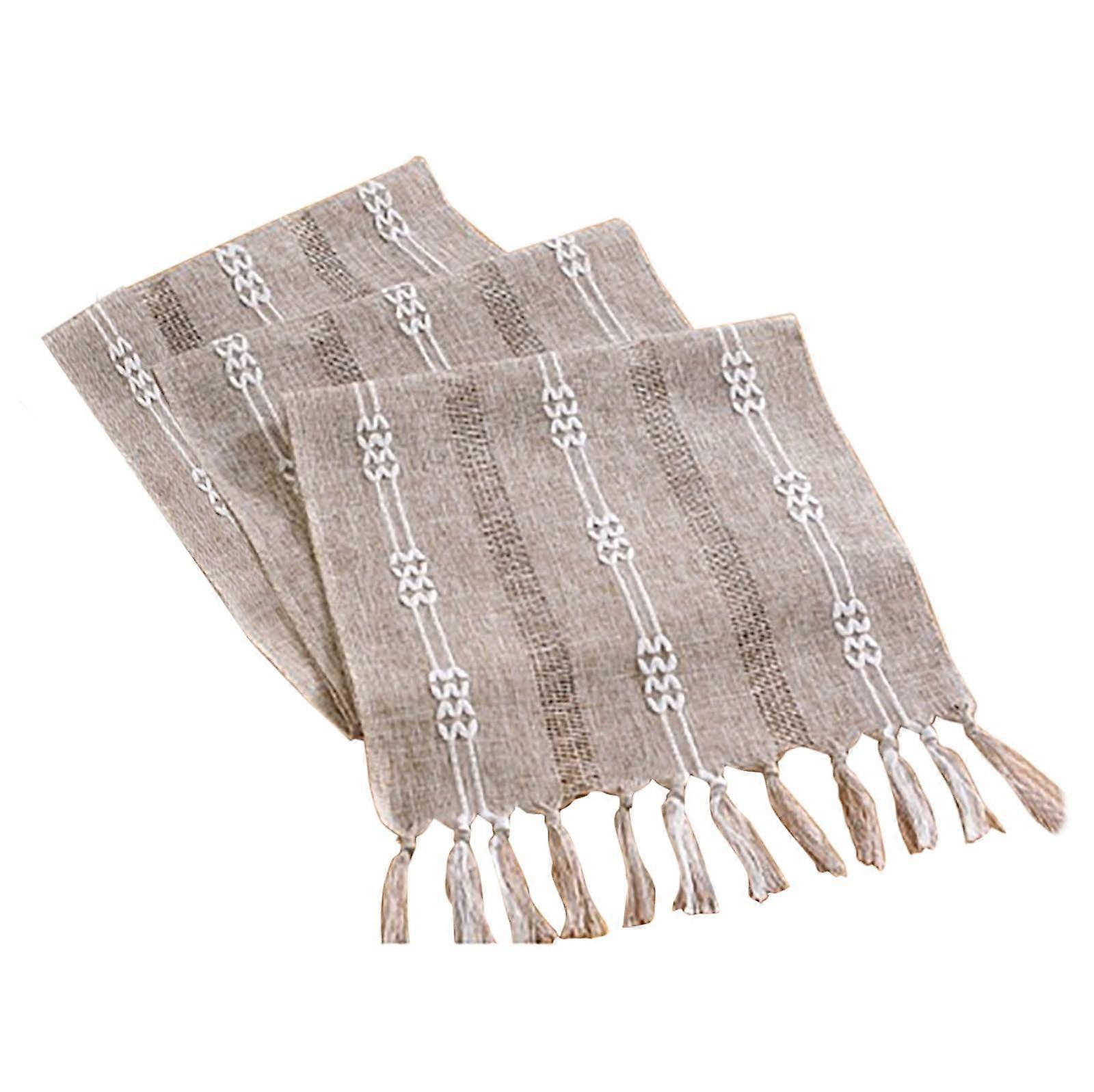 Begine Banner Flags Clearance,Hollow Striped Table Runner - Brown 33*180 (Size Including Lace),1×Table Runner