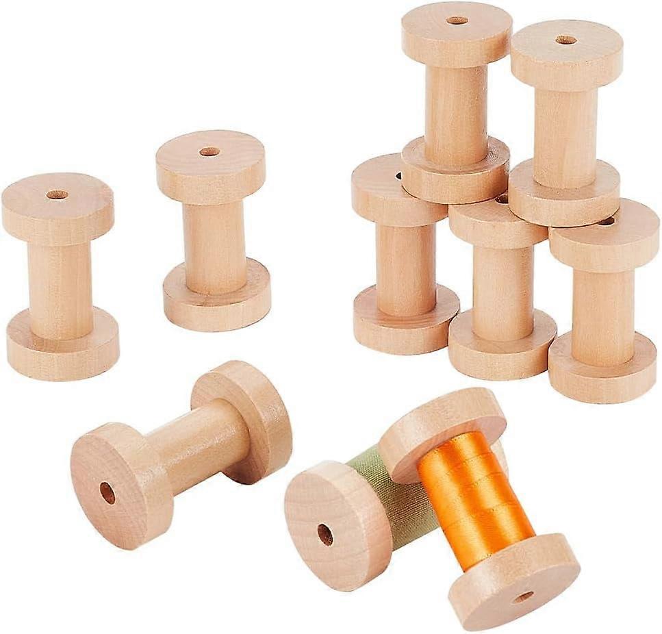 10pcs Wooden Empty Spools 1.5x2.4 Inch, Unfinished Wheat Wood Bobbins for DIY Crafts, Sewing, Wire Weaving, Compatible with Craft Needles
