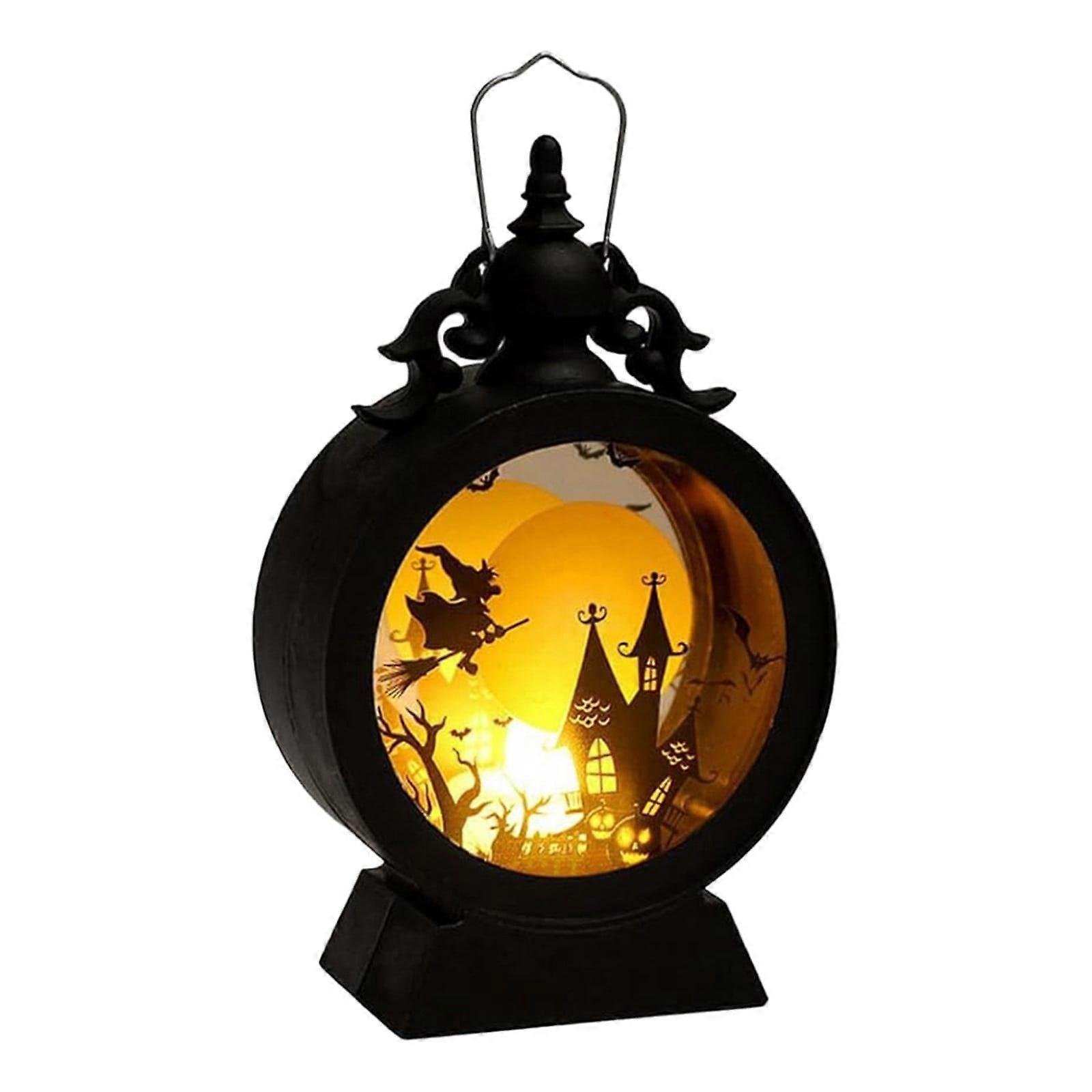 LED Halloween Retro Candle, Portable Windproof Round Atmosphere Lamp, Compatible with Christmas & Halloween Desktop Decorations