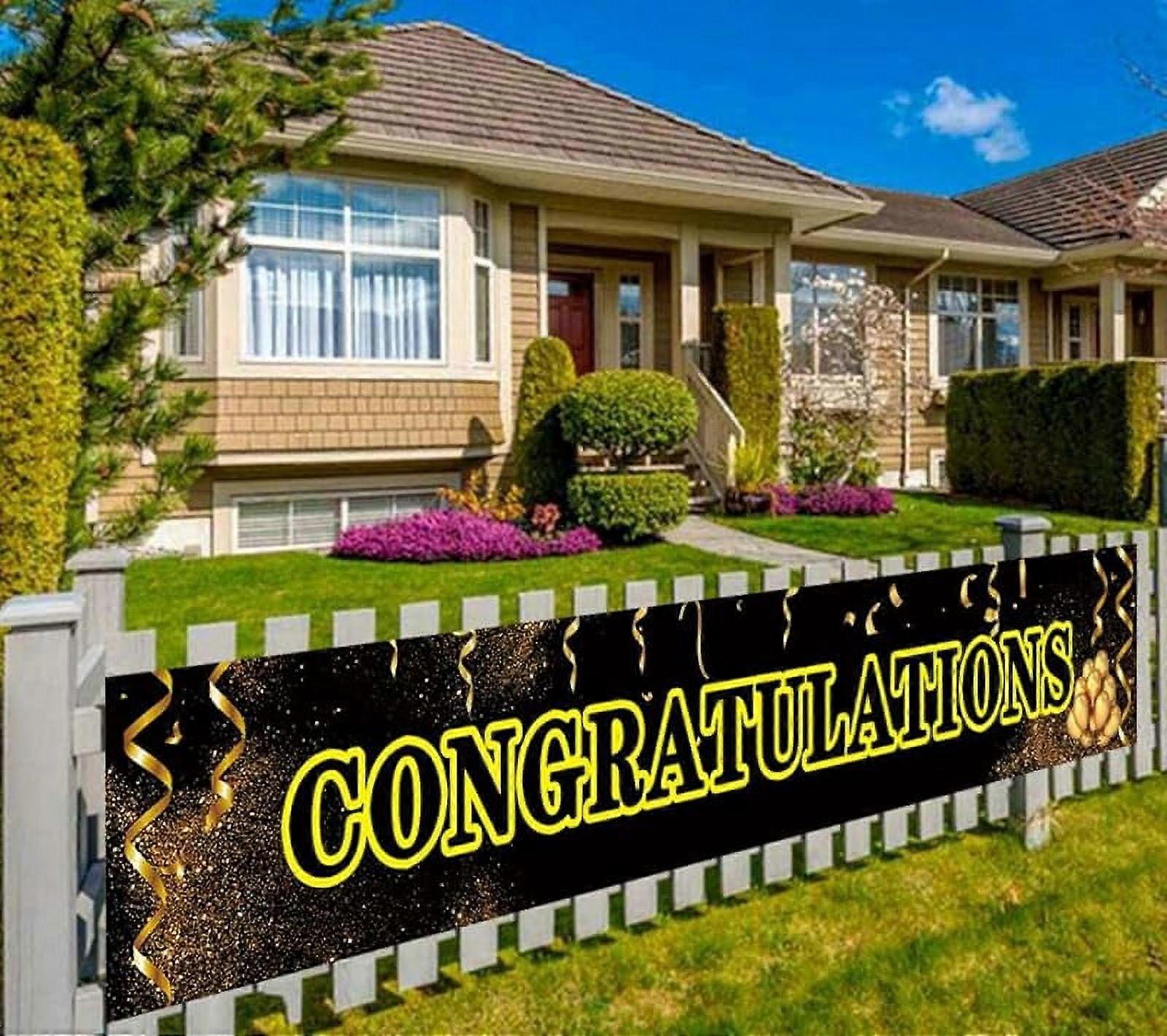Custom Large Congratulations Banner, Black Congrats Banner for Birthday, Retirement, Anniversary, Graduation Party Decor (9.8 x 1.6 ft)