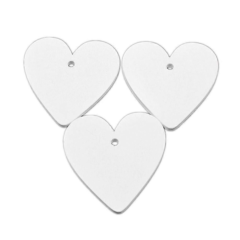 30 Pcs Whiting Bedroom Decoration Heart Wooden Cutouts Unfinished Crafts Labels Ornament Rope Heart-shaped White Bamboo