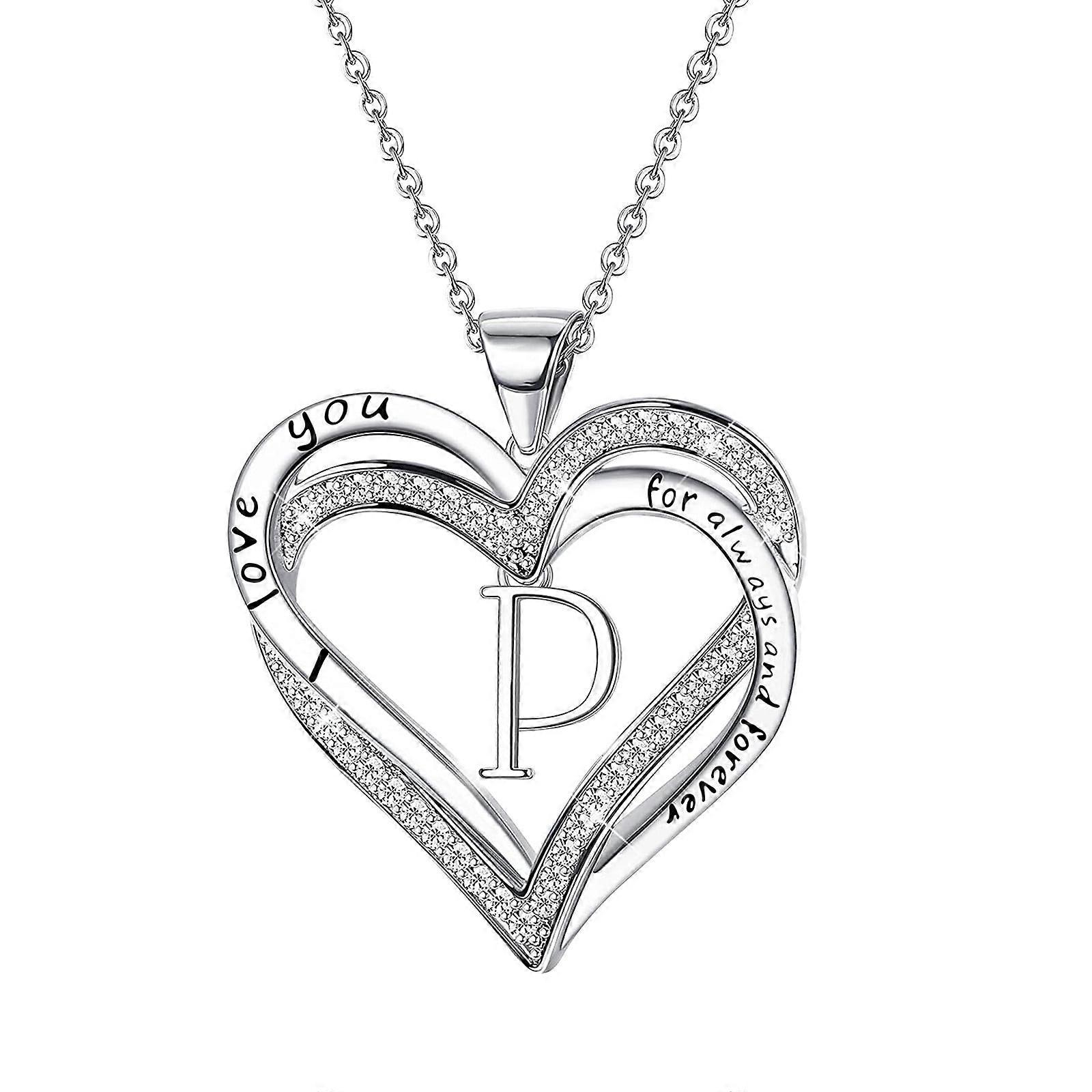 Tarmeek Heart Shaped Letter Necklace for Women, Silver Plated Pendant Gift - Compatible with Valentine's Day & Couples Gifts
