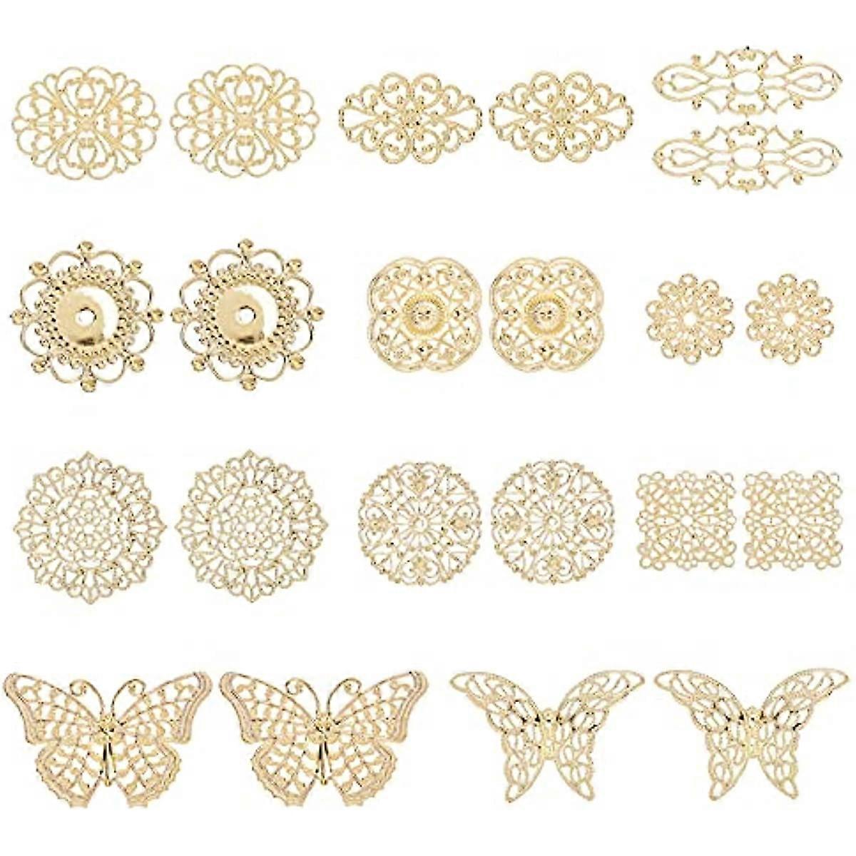 66Pcs Gold Filigree Connectors, Butterfly Charms, Metal Pendants for DIY Jewelry Making, Laminate Decoration Supplies