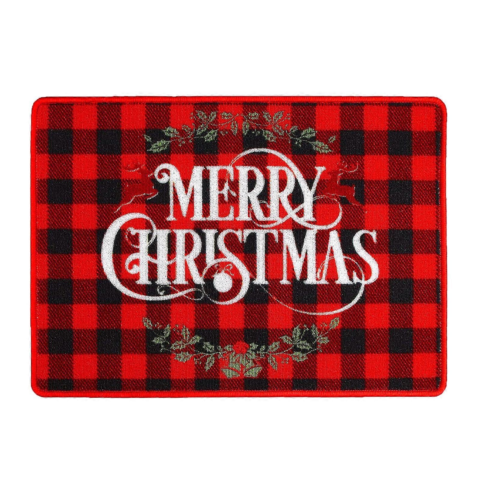 Merry Christmas Washable Non-Slip Slogan Print Indoor Outdoor Holiday Rug for Living Room, Dining Room, Bedroom, Kitchen Runner