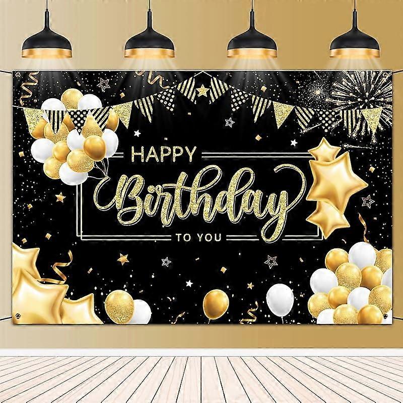 Happy Birthday Backdrop Banner Gatherfun Birthday Party Supplies Decoration Large Black and Gold Photography Background Party