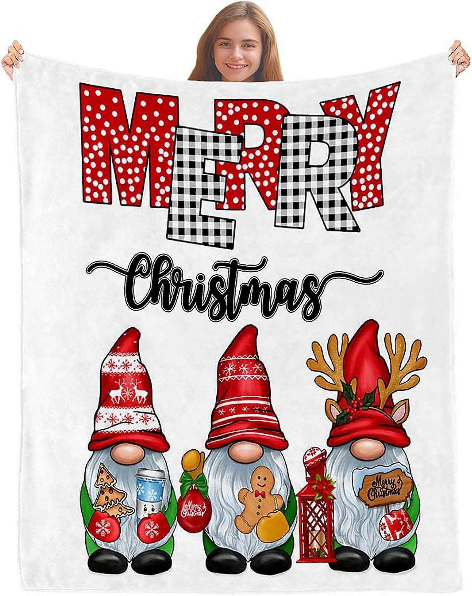 Gnome Throw Blanket, Christmas Blanket compatible with Holiday Decor, Black White Buffalo Plaid Polka Dot, Soft Fleece for Couch 30"x40"
