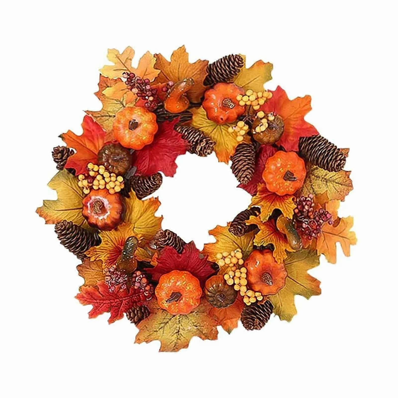 Winysin40CM Halloween Pumpkin Berry Maple Leaf Fall Door Wreath Door Wall Ornament