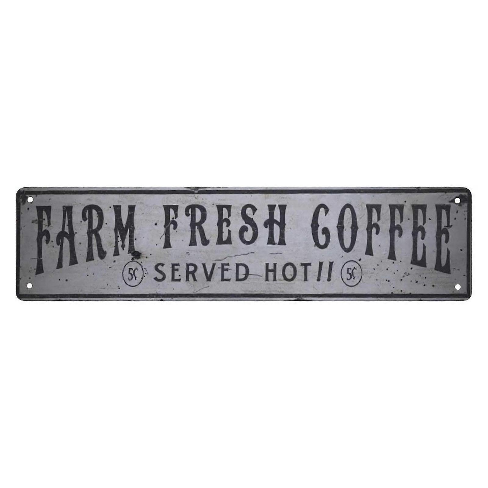 Rustic Metal Tin Sign 4x16 inch - Farm Fresh Coffee Served Hot, Vintage Wall Decor for Bar, Man Cave, Shop, Compatible with Country Theme Décor