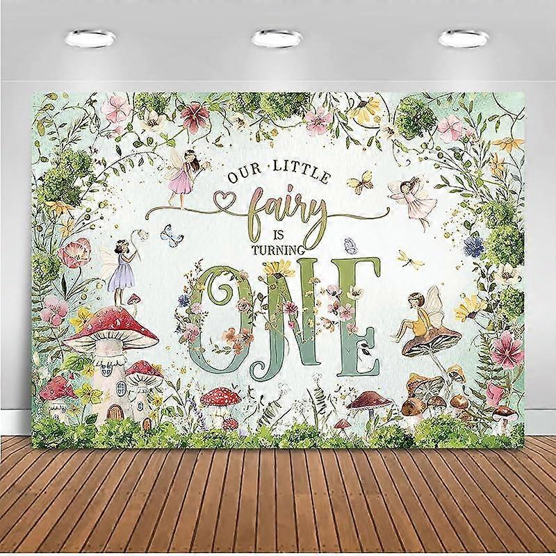 Custom Fairy 1st Birthday Backdrop, Princess Girl Happy First Mushroom Fairy Birthday Background, Little Flowers Fairy Tale Wonderland Party