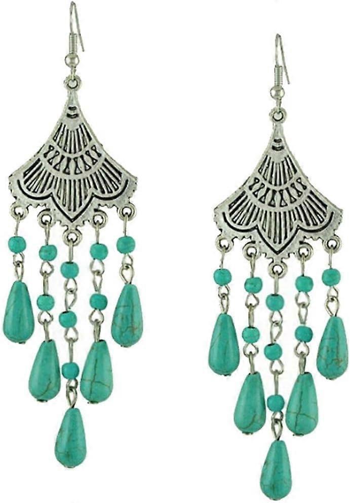 Turquoise Earrings Bohemian Tassel Dangle Bead Handmade Blue Beads