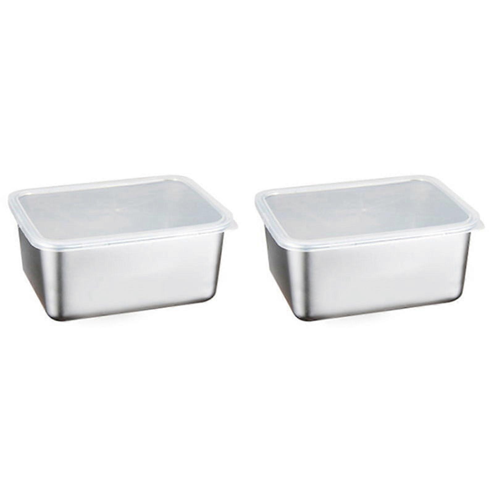 2X Stainless Steel Fresh-Keeping Box Storage Box with Lid Food Storage Box Cooking Ingredient Packaging Box, A