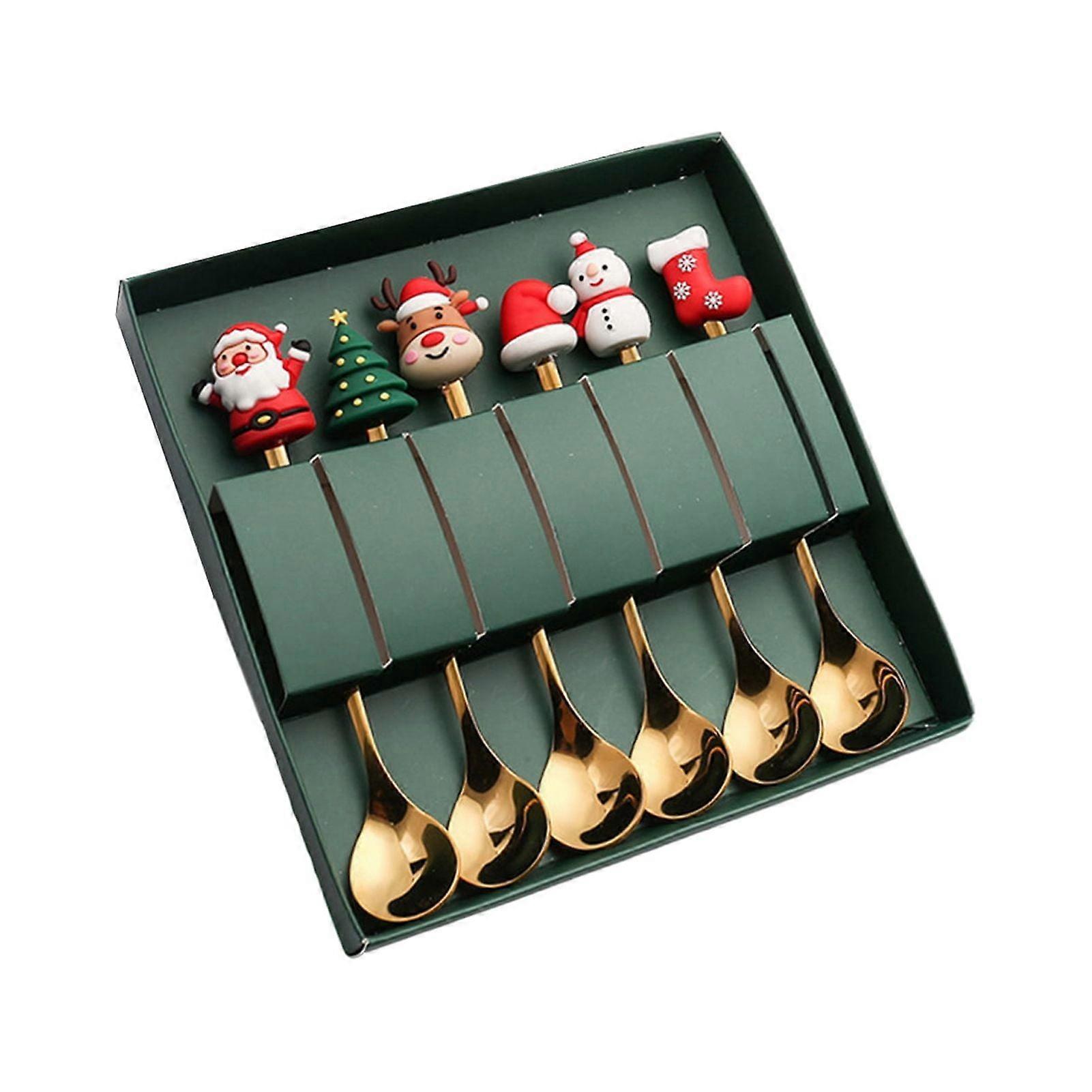 6Pcs Christmas Fork Spoon Set with Gift Box, Food Grade Stainless Steel, Xmas Charm Topper, Long Handle Cutlery - Perfect Festival Gift