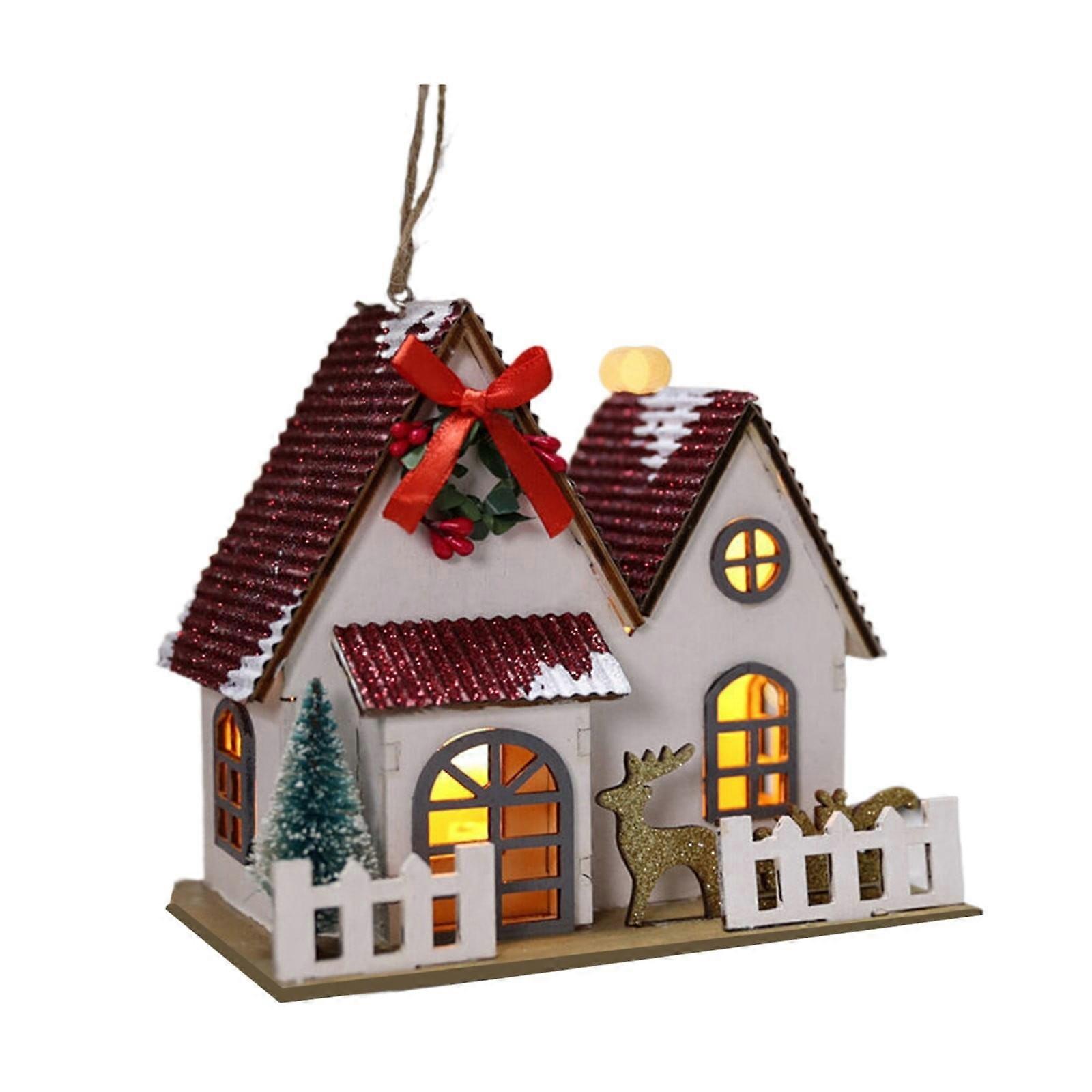 BODOAO Christmas Village House Decor - Mini Fairy Garden Accessories, DIY PVC Mini Cottage Xmas Ornament, Compatible with Christmas Decorations