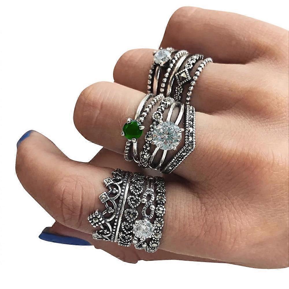 Up to 50% off Women Rings Set of 12Pieces Women Bohemian Vintage Crystal Stack Rings Above Rings Set for Valentine's Day