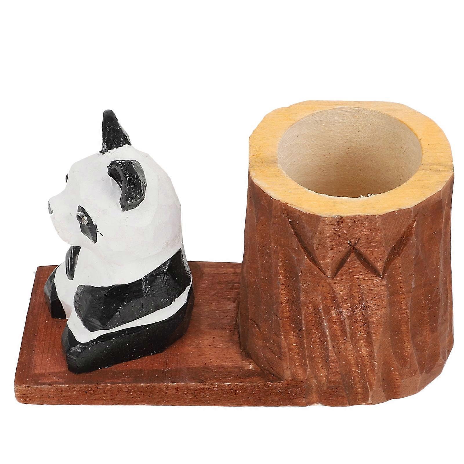Eease Panda Design Pen Holder Wooden Pencil Ruler Holder Desktop Stationery Organizer