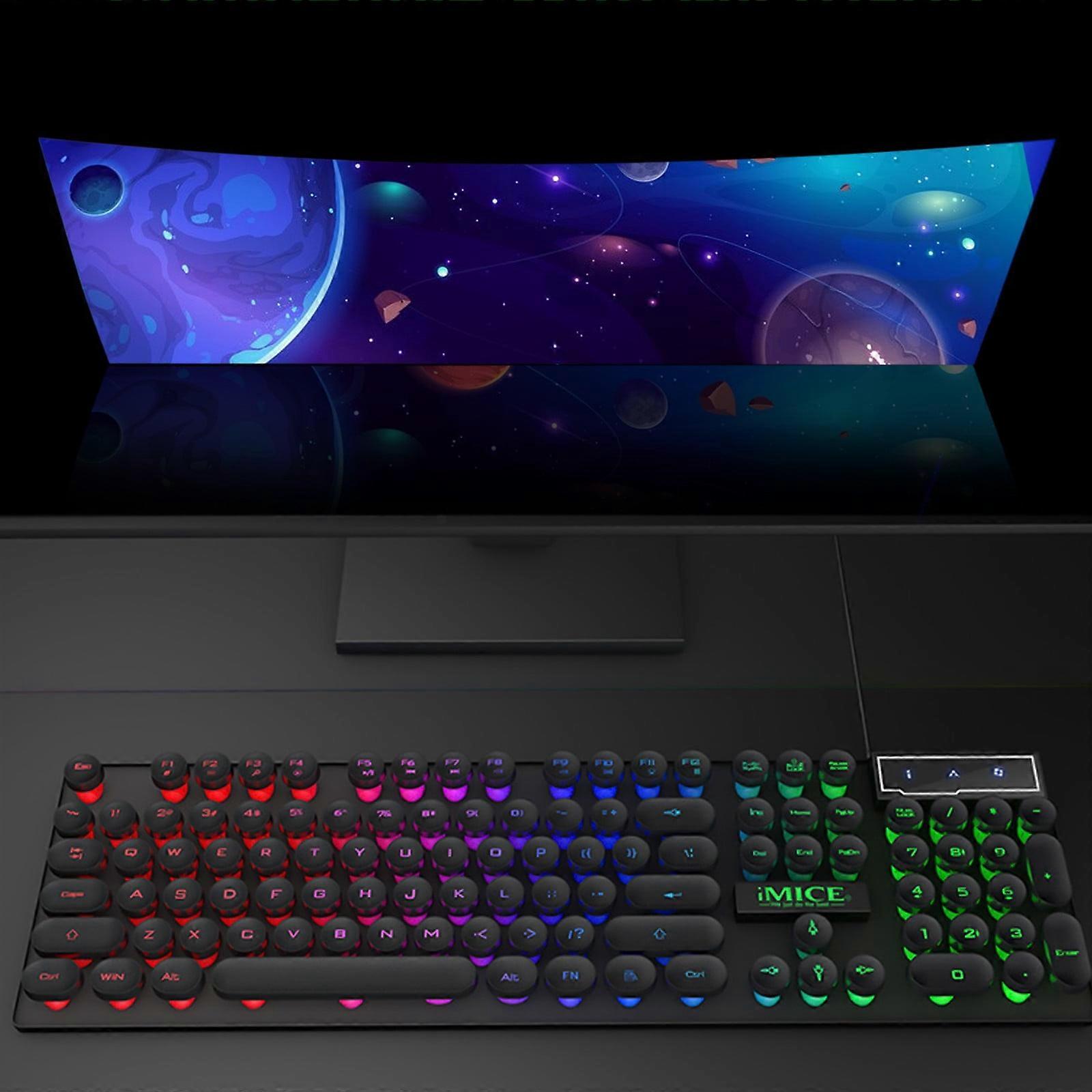 Wired Gaming Keyboard, 104 Keys, Round Caps, LED Tricolor Backlight, Multimedia Control, Compatible with Windows, 80% off!