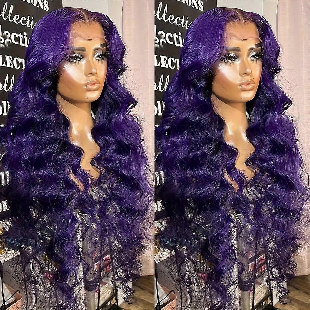 Ombre Purple & Black Roots Synthetic Lace Front Wig 13x4 Deep Part Long Loose Wavy Heat Resistant Preplucked Glueless