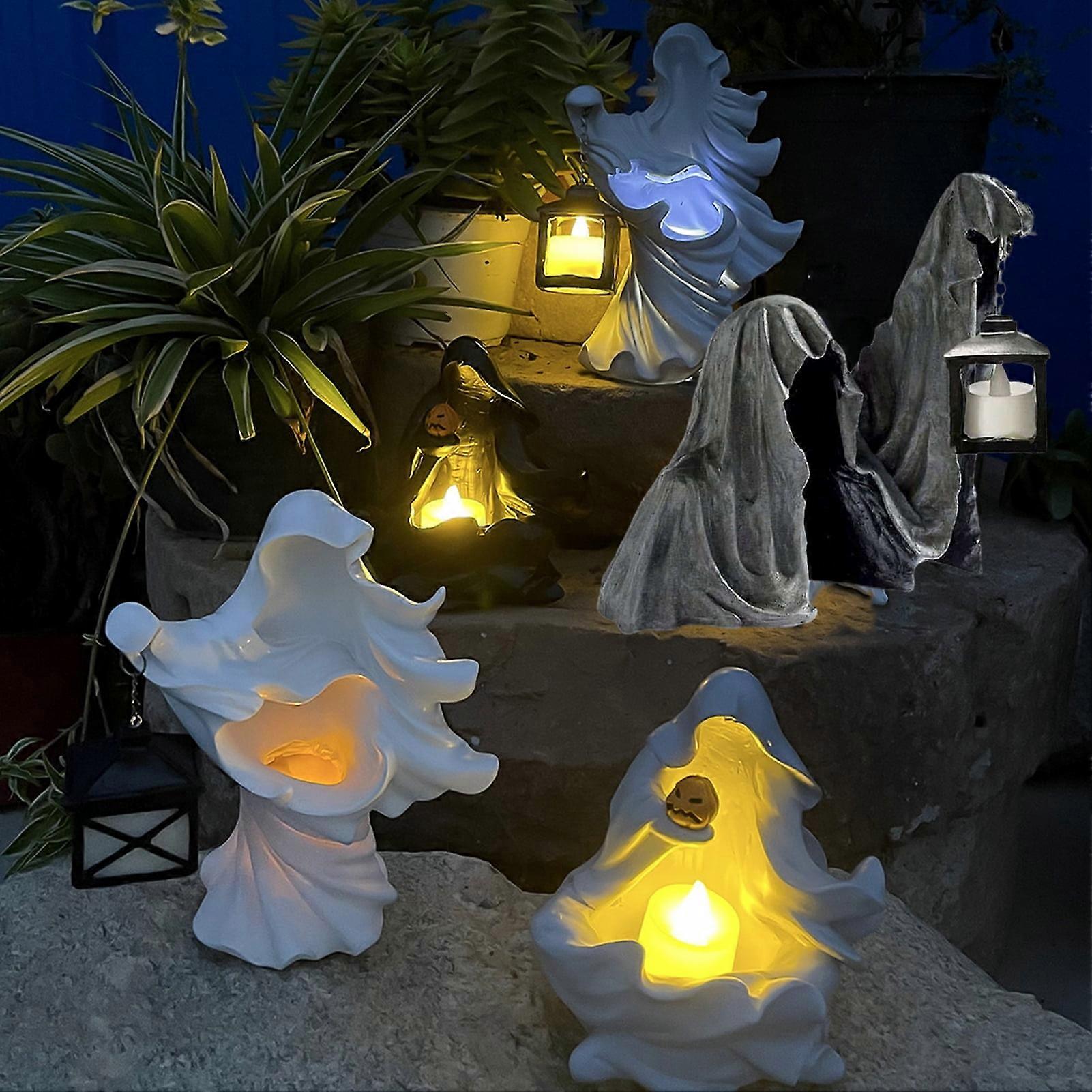 SUSUchens Halloween Ghost Night Light Resin Ghost Lantern Decoration Halloween Home Desktop Figurine for Indoor Outdoor Decor Style D