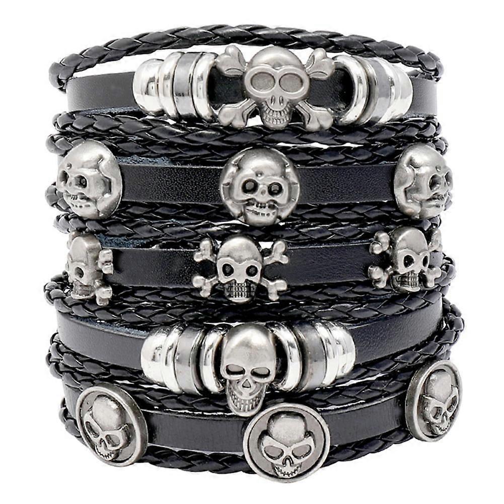 Personality Handmade Beaded Leather Bracelet Diy Set Skull Halloween Cowhide Bracelet - Five-Piece Set-Black
