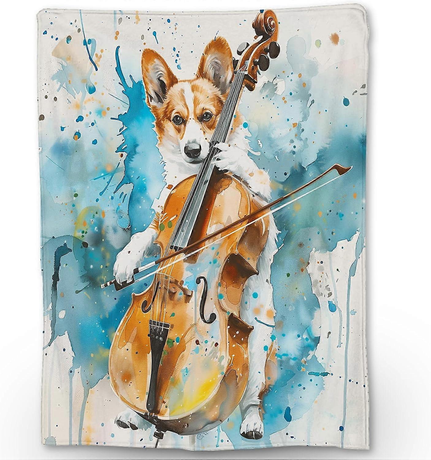Cute Corgi Blanket - Soft Lightweight Flannel Throw for Couch, Bed, Travel - Fuzzy Corgi Music Design 80×60 in
